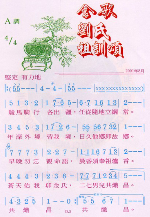 刘氏会歌《刘氏祖训颂》เพลงประจำตระกูล